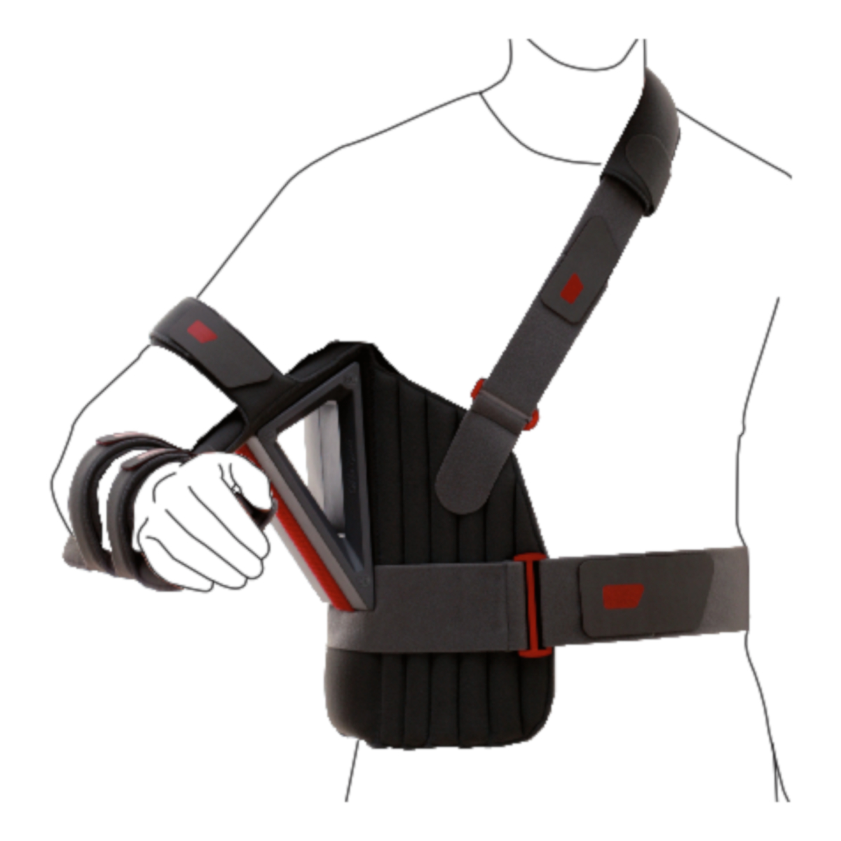 - Immobilizes the shoulder in 0⁰, 15⁰, 30⁰, 60⁰, or 90⁰ of abduction