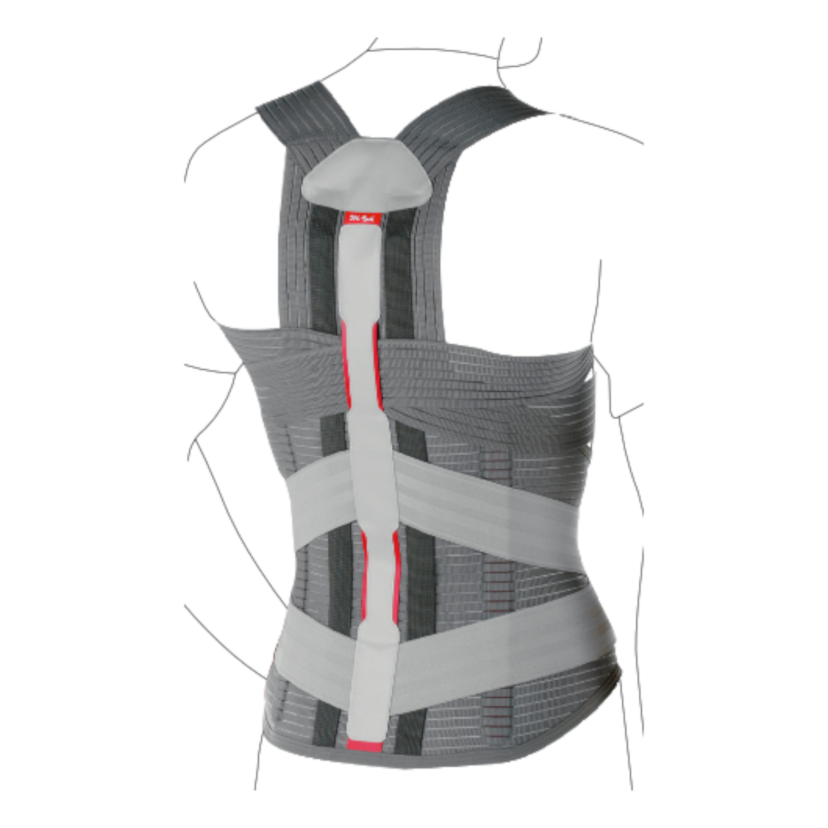 Elastic orthosis offers hyperextension support for the thoracic spine.