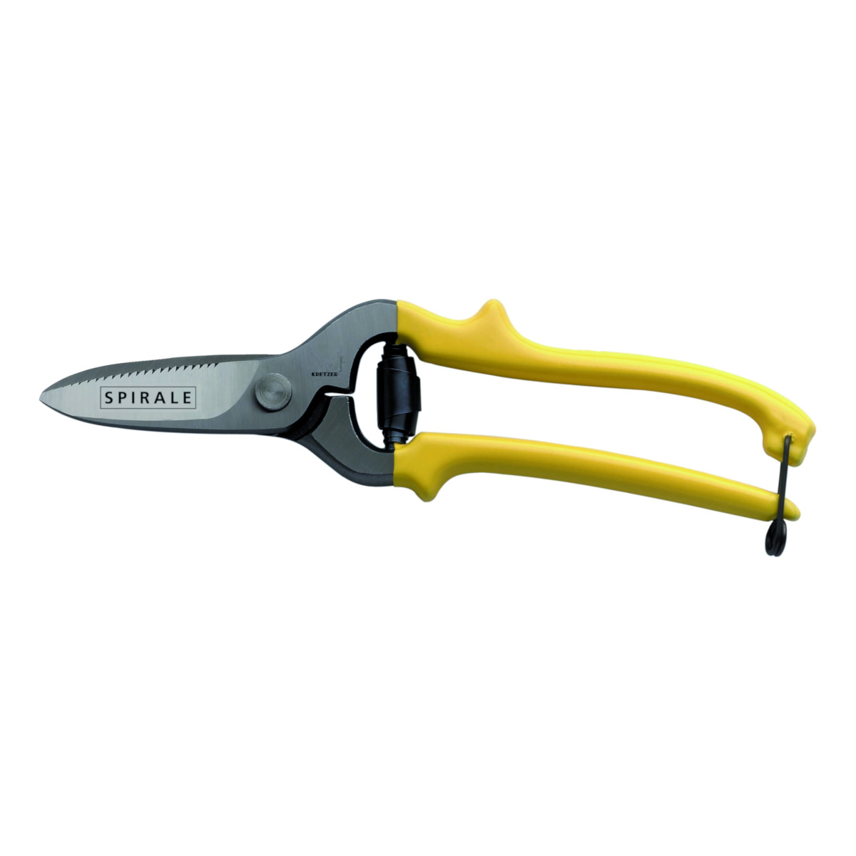 Forged steel, bent, with toothed blade, painted handle.