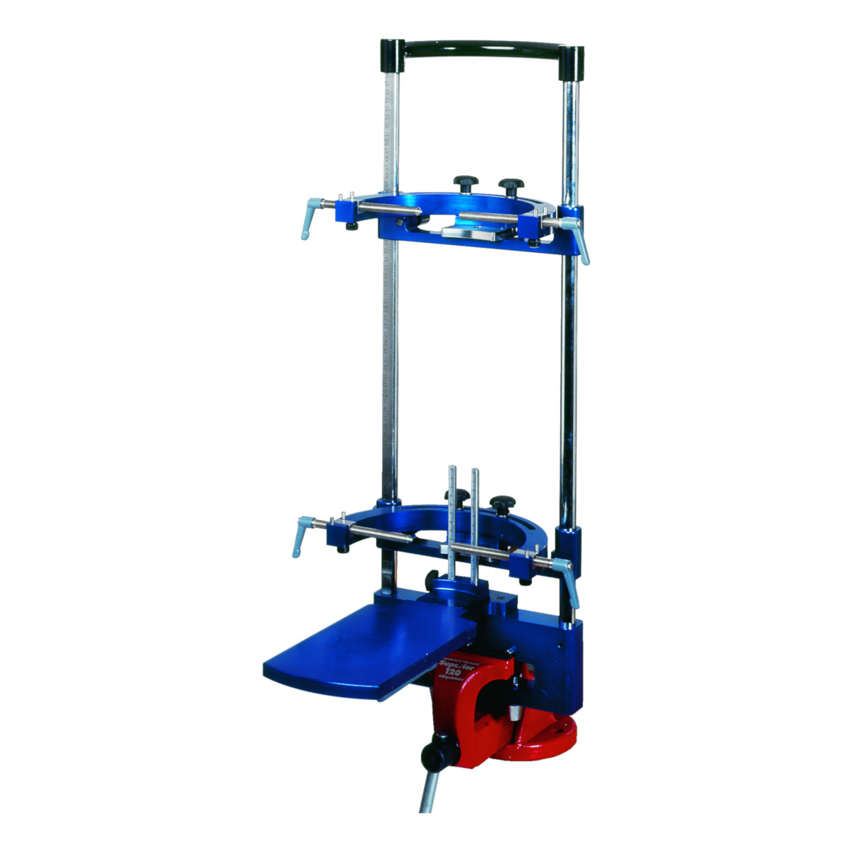 To be used for three-dimensional alignment of leg orthoses and positioning of knee and ankle joint points on a plaster negative or plaster positive.