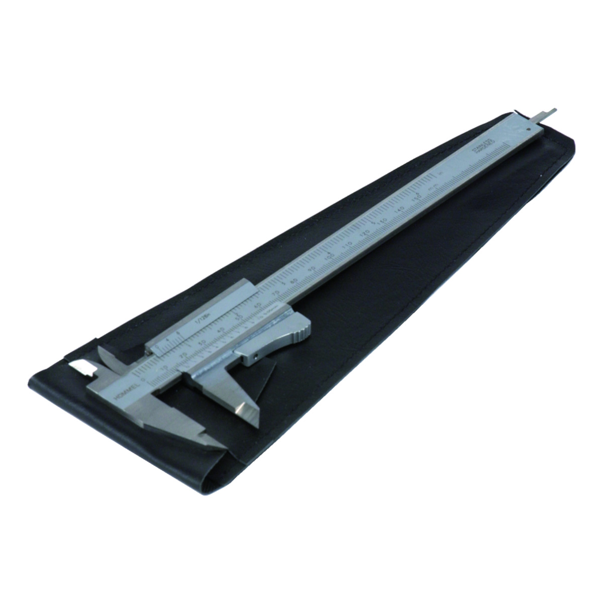 Stainless steel, chromed matt graduation and Vernier scale, lower division in mm, upper division in inches.