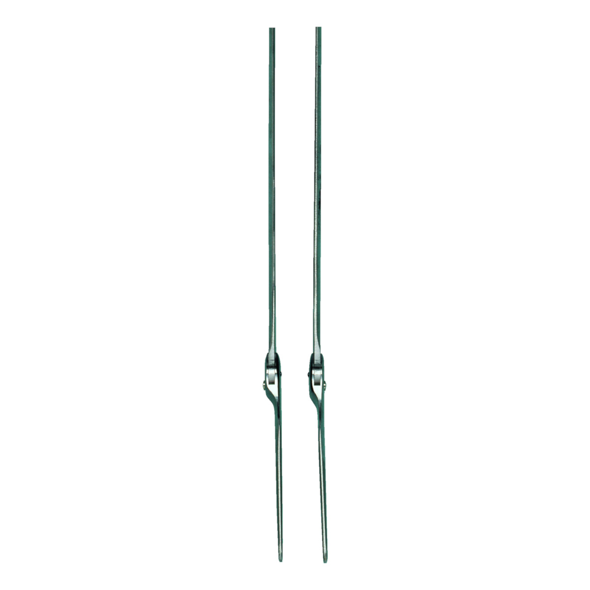 Orthopedic steel joints with ball bearing, medial joint head offset outside, lateral joint head offset inside, concave half-round bar profile, forged upper and lower joint bars.