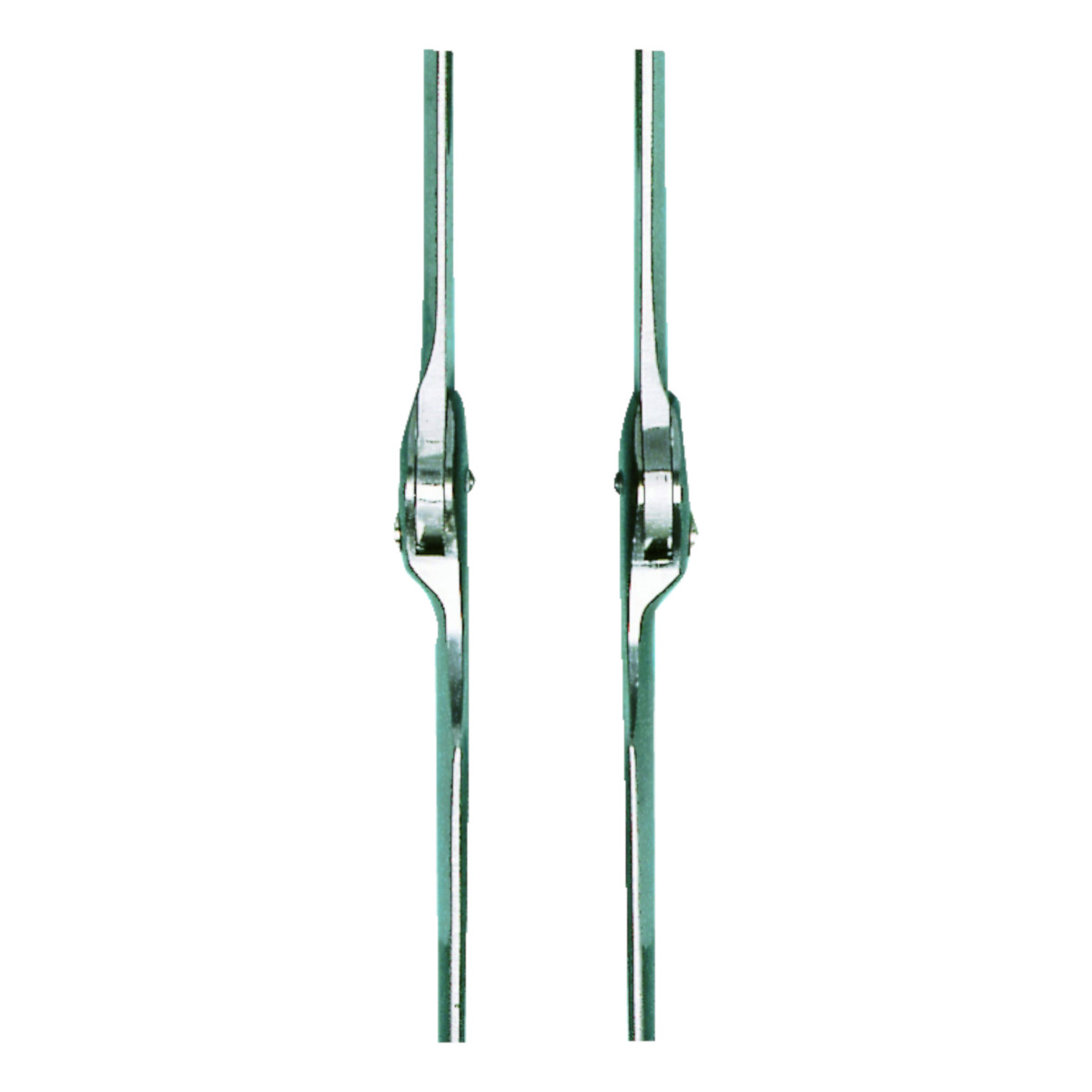 Stainless steel joints with ball bearing, concave half-round bar profile, forged upper and lower joint bars and the heads of both joints offset outside.