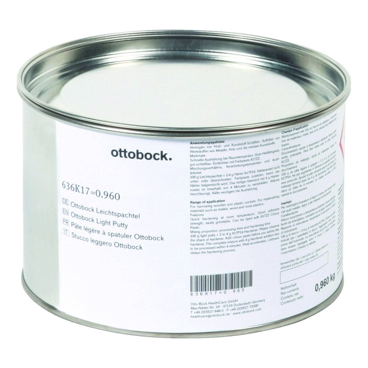 - Can be coloured with Ottobock resin colour pastes