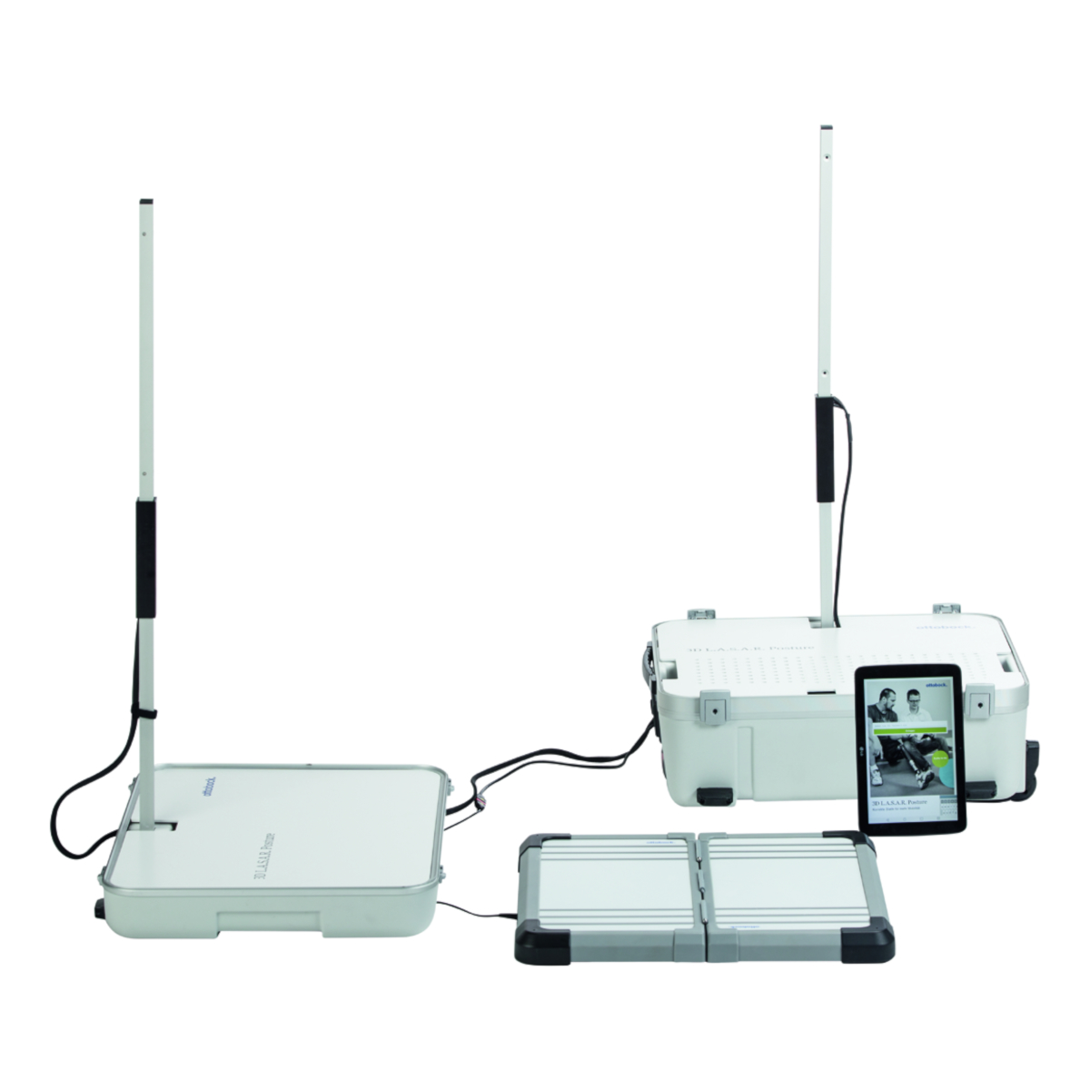 - A transport case with wheels and pull-out handle in which all components are stored. The two sides of the case also serve as tripod feet for the camera tripods. Alternatively, the system can be removed from the case and permanently installed in one place