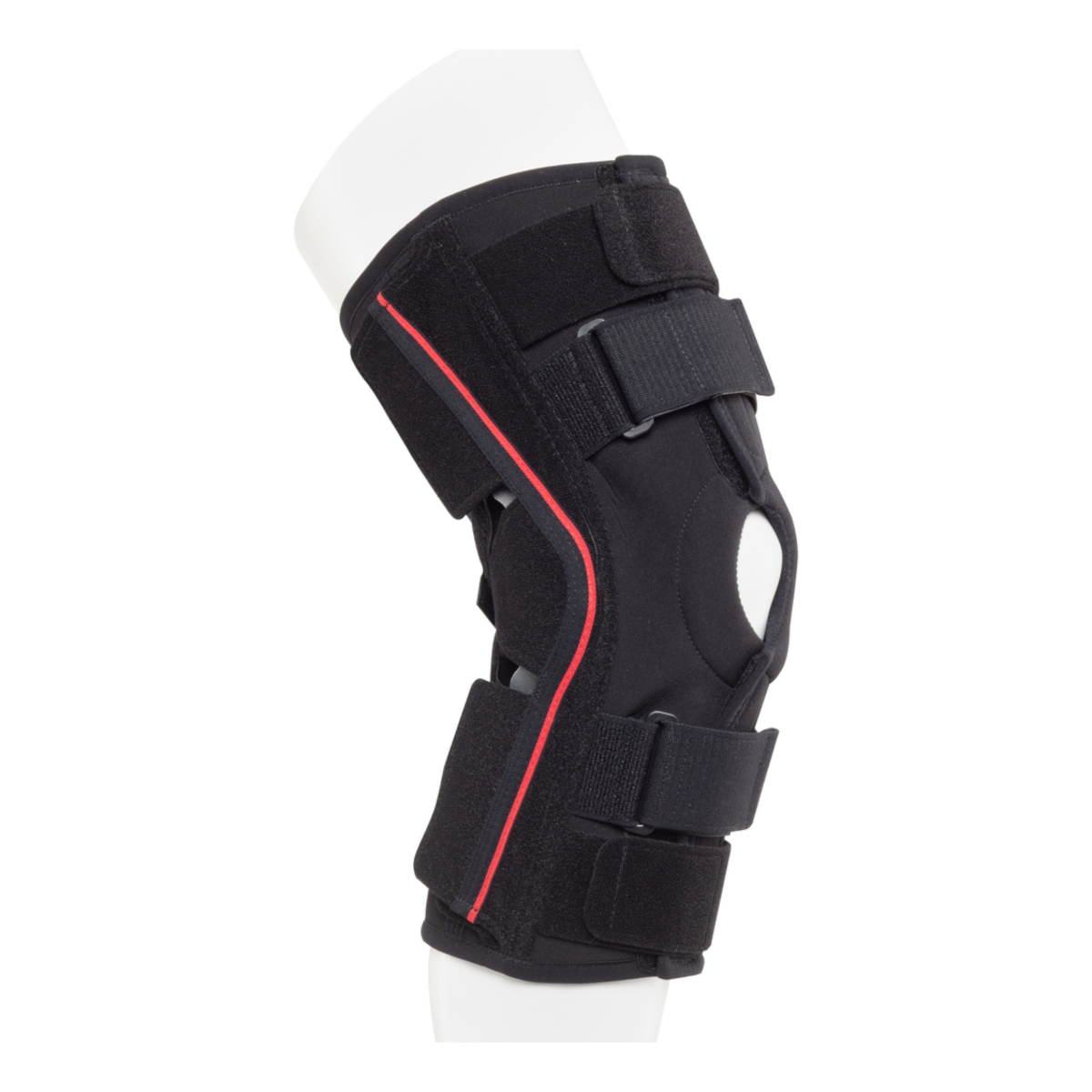 The user obtains good knee control at movement training; such as gait training, motion training from chair to bed, chair to toilet, etc. Genu Neurexa also provides the user with pain relief as it positions the patella and prevents involuntary movements in the knee; hyperextension and lateral movement.
