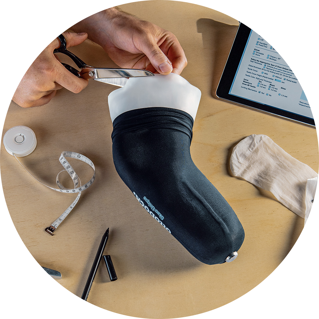 Los liner personalizados de Ottobock están diseñados para pacientes con necesidades clínicas únicas, ya sea debido a la forma de la extremidad, tejido sensible o cicatrices. Cada liner se adapta a la anatomía del usuario, utilizando materiales de silicona o uretano, y se puede personalizar aún más con opciones de tela, aditivos o modificaciones de alivio de presión.