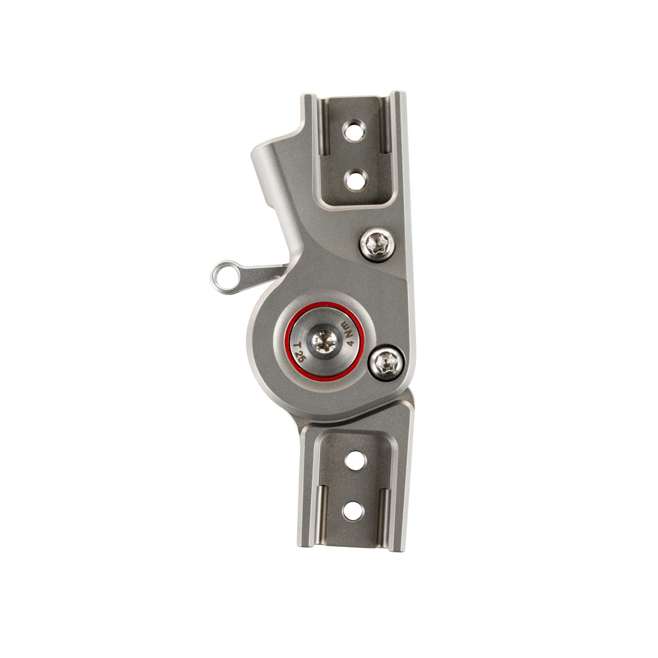 The 17KL100 is an orthotic knee joint with integrated lock for bilateral use. There are numerous options for unlocking the joint. The short lock lever can be replaced with a longer one. Optionally, a pull-release cable may be attached to the lock levers. The 17MA1 Nexgear function switch, which allows the joint to be unlocked for long periods for riding an indoor bicycle, is also available as an accessory. The lock lever play can be easily adjusted as needed using an eccentric screw on the inside of the joint.